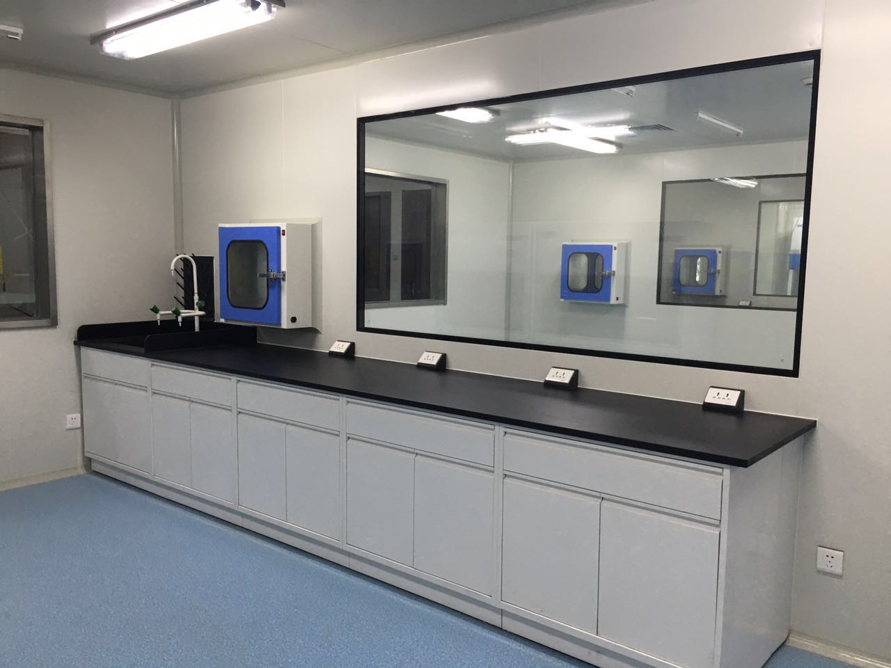 天平臺柜體抽面與門板:采用18mm厚的國產優質環保型中纖板,表面粘壓國產優質1.0mm厚珍珠面防火板,所有斷面經經國產優質2.0mm厚PVC封邊防水處理,四周做倒角圓滑處理, 外表美觀、光滑。